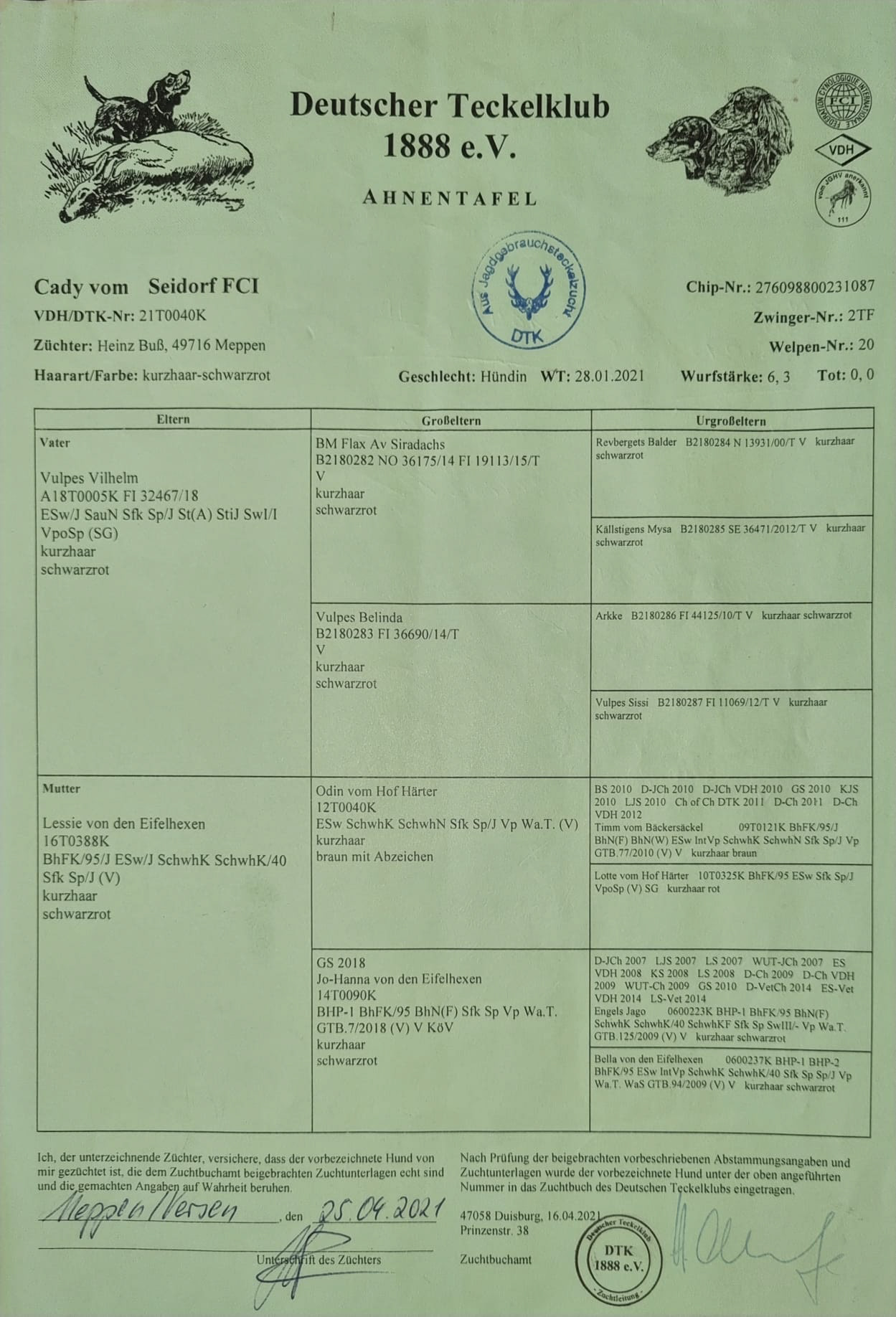 VDH/DTK-Nr.: 21T0040K