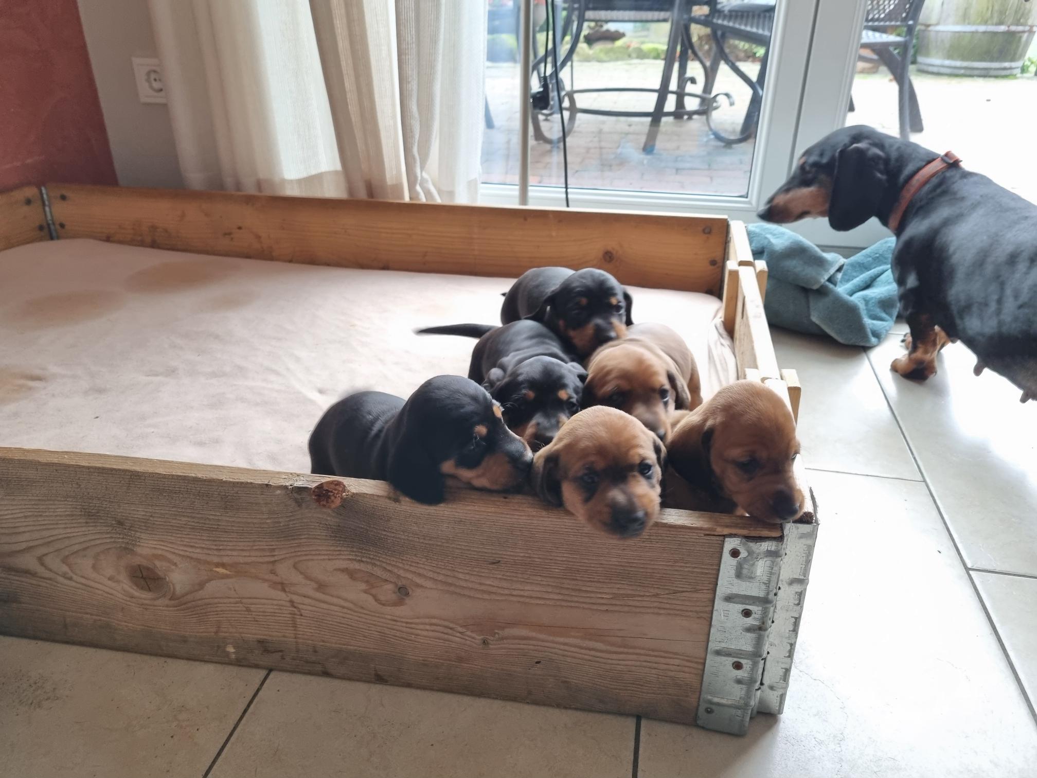Alle Welpen haben ein nettes neues Zuhause mit Familienanschluss gefunden. Einige von meinen Schützlingen gehen zudem in den jagdlichen Gebrauch, wir sind gespannt wie sich unsere edlen Kurzhaarteckel weiter entwickeln, die notwendige Frühprägung hierfür wurde Ihnen zu Teil und mit auf den Weg gegeben.